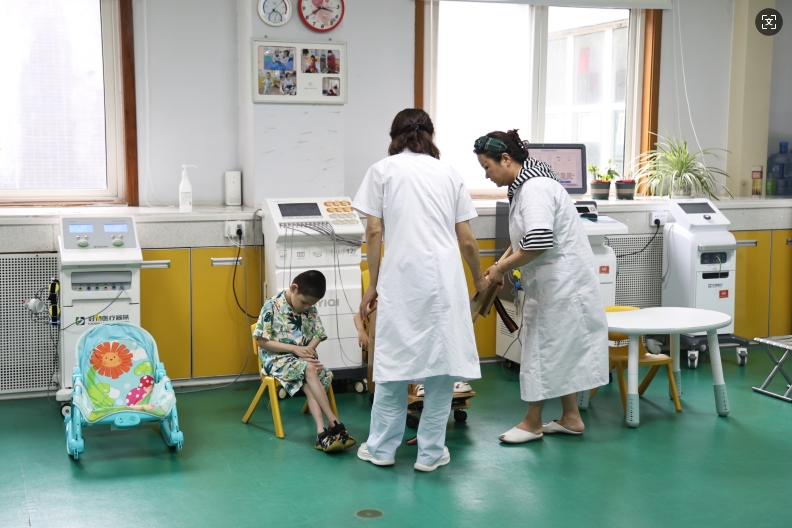在院内给残疾儿童做康复治疗还原一个真实的福利院