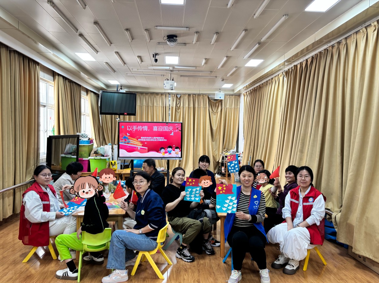 在困境儿童关爱活动现场,《我和我的祖国》《歌唱祖国》等经典旋律回荡现场,孩子们手持国庆主题相框拍照留念,沉浸在浓厚的节日氛围中。社工为孩子们讲述了国庆节的由来与国旗的含义,志愿者与参与家庭结对协作,共同完成国旗、和平鸽等主题手工作品。孩子们在动手过程中不仅锻炼了协作能力,也增强了对祖国的认同与热爱。活动尾声,孩子们挥舞着小国旗,手持作品在镜头前绽放灿烂笑容,为祖国送上真挚祝福。