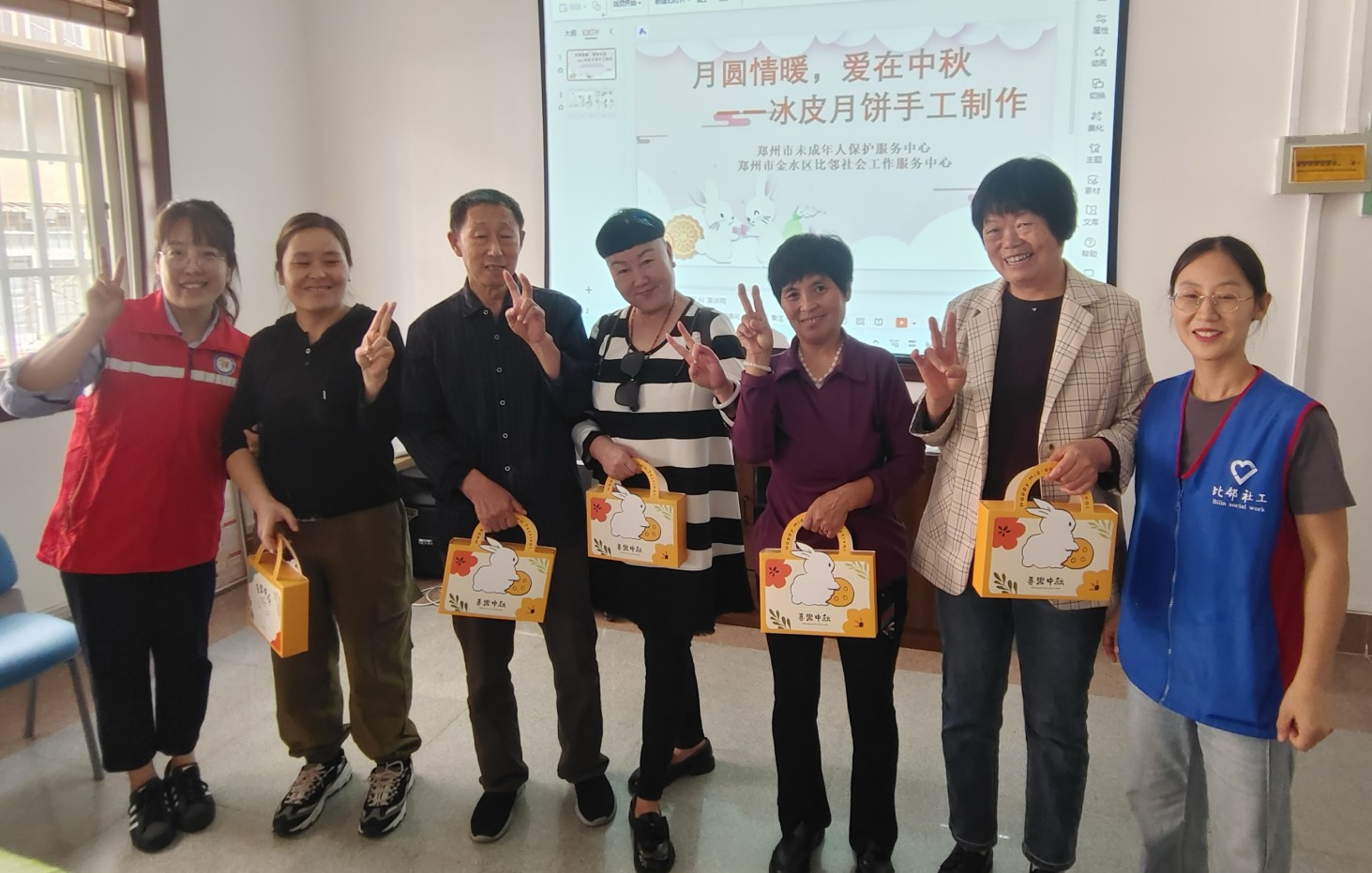 为关爱困境儿童及其家庭,促进儿童社会融入、缓解家长心理压力,在中秋、国庆双节来临之际,郑州市未成年人保护服务中心于9月25日上午组织开展了“月圆情暖,爱在中秋”冰皮月饼手工制作活动和“以手传情,喜迎国庆”困境儿童社会融入活动,为困境儿童家庭带来温暖和支持。