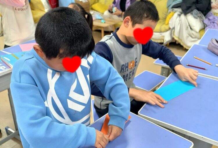 “纸上心声”环节里,孩子们俯身提笔,将与家人、朋友的委屈、困惑写在纸上,亲手折成纸飞机。随着一声齐呼,纸飞机腾空而起,划过活动室的上空。紧锁的眉头舒展,笑脸绽放,心事随纸飞机远去,阳光般的喜悦铺满房间。活动尾声,孩子们右手按心感受心跳,左手搭在伙伴肩头传递暖意,齐声宣誓:“我听你的情绪,懂你的需要,我们一起走出迷宫!”誓言回荡间,情感的种子深深扎根。